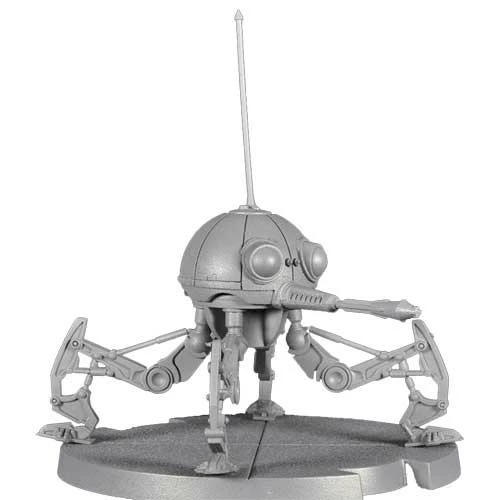 Expand your droid forces with the DSD1 Dwarf Spider Droid Unit Expansion for Star Wars: Legion! Favored by the Commerce Guild for the rugged durability and ease of manufacture, these four-legged, dome-shaped mechanical arachnids feature powerful, centrally mounted armaments capable of fulfilling a wide variety of battlefield roles.