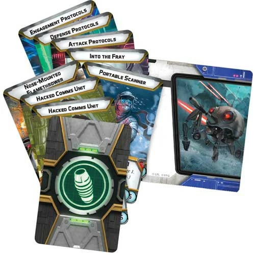 Within this expansion, you’ll find everything you need to add a DSD1 Dwarf Spider Droid to your Separatist armies as a support unit. This droids versatile nature is captured in the finely detailed, unpainted hard plastic miniature that can be customized with a nose-mounted laser cannon, flamethrower, or ion blaster. These physical modifications have a practical application in eight upgrade cards that invite you to outfit your DSD1 Dwarf Spider Droid with a variety of weapons and battle protocols.