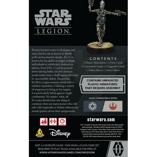 Bounty Hunters come in all shapes and sizes, but few are as feared for deadly as IG-series assassin droids. IG-11 is known for his ability to target multiple individuals in whirlwind, destructive attacks. Even if IG-11 can be pinned down during battle, his self-destruct mode makes him a challenging adversary to successfully defeat.
