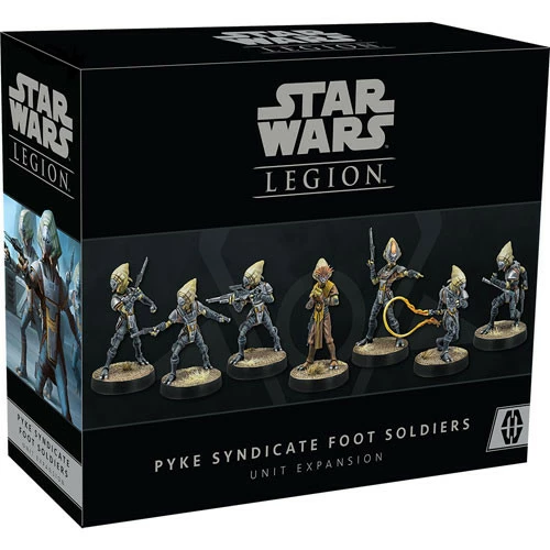 Players can hire additional soldiers to protect their interests throughout the galaxy with this pack for Star Wars: Legion! Adding a corps unit of six Pyke Syndicate Foot Soldiers that can join Rebel, Imperial, Republic, or Separatist armies or band together with their fellow mercenaries in the Shadow Collective, this expansion gives players even more versatile options for building their forces. Furthermore, they’ll also find a Pyke Syndicate Capo who can lead a single unit or an entire mercenary army as a commander along with three command cards, opening up even more strategic choices. Finally, eight upgrade cards give players the freedom to kit out their units with heavy weapons, additional gear, and more!