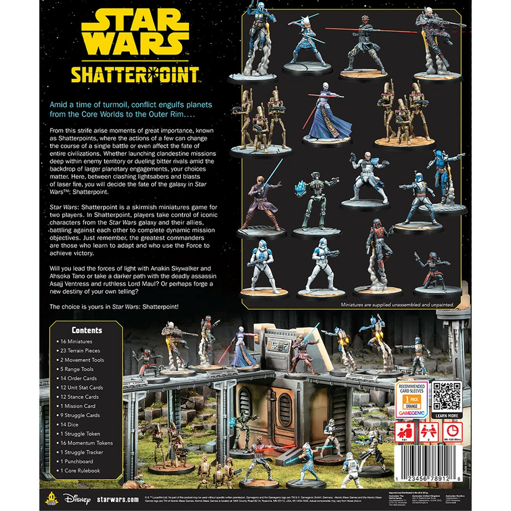 Shatterpoint is a skirmish miniatures game for two players. Players take control of iconic character from the Star Wars galaxy and their allies, battling against each other to complete dynamic mission objectives. Just remember, the greatest commanders are those who learn to adapt and use the Force to achieve victory.