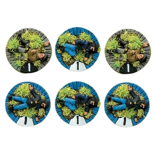 During the cause of the game a Black Powder General will have a need to track their army’s casualties. These casualty markers feature prominent markers enabling just that . . . track wounds effectively and with a visual flourish. These are generic, and are thus suitable to be painted up as either Union or Confederate troops.