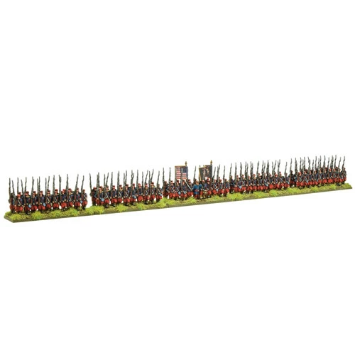 This plastic set provides enough models to field a complete Union brigade comprising one zouaves regiment of 100 men, a regiment of cavalry, a regiment of dismounted cavalry and a regiment of skirmishers.