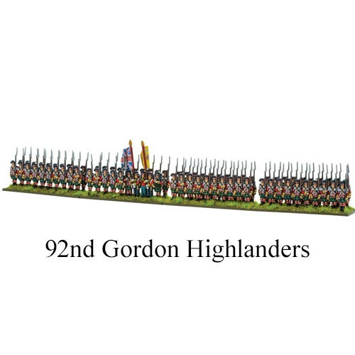 With the contents of this plastic boxed set you can field all three of the Highland units – the 42nd ‘Black Watch’, the 79th Cameron Highlanders and the 92nd Gordon Highlanders. The Highland units had won a reputation for tough fighting in the Peninsular campaign and fought well at Quatre Bras and Waterloo on the following day. They are each commanded by a smartly dressed brigade commander on horseback.