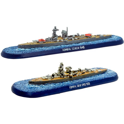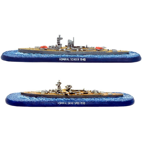The Deutschland-class of warships were relatively small, by battleship standards, but were well armoured and carried the type of armament traditionally seen only on battleships. This led to them being nicknamed “pocket battleships”. Superb commerce raiders, the Admiral Scheer successfully plied the Atlantic and Indian Oceans, disrupting merchant shipping wherever it went, whilst the Admiral Graf Spee was famously cornered during the Battle of the River Plate and scuttled herself soon after.